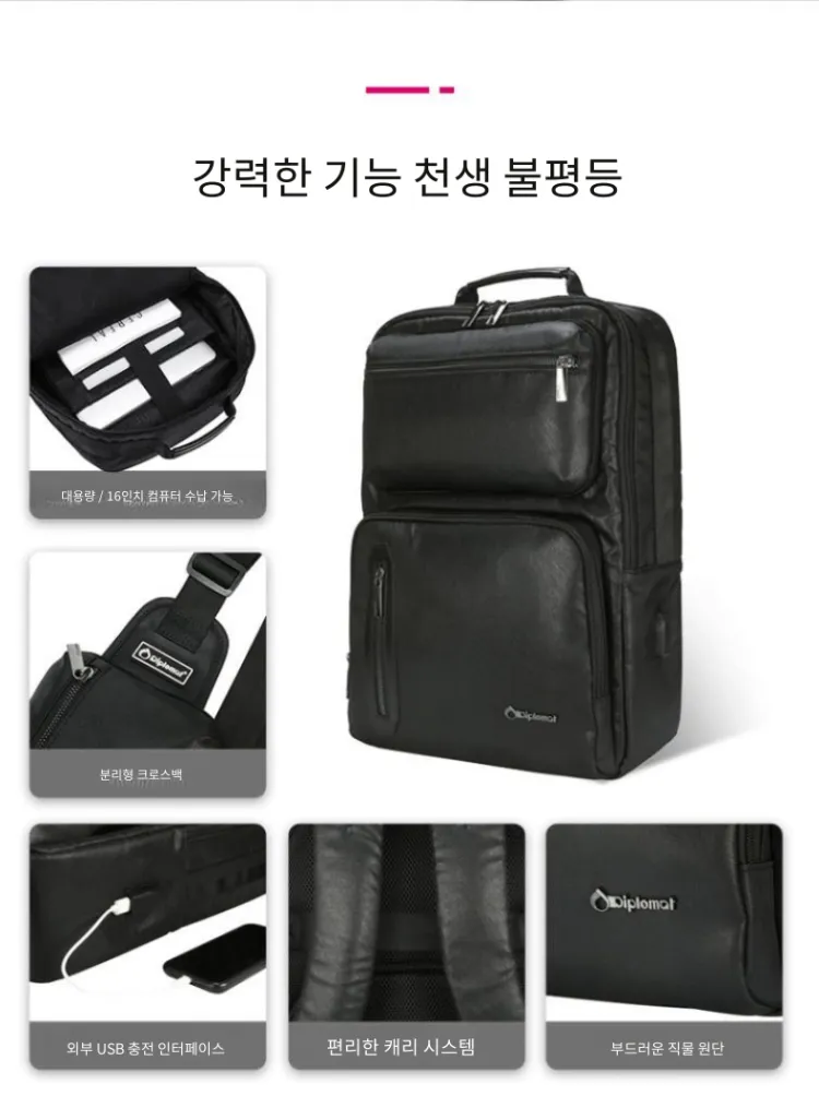 Diplomat 원단 노트북 가방 백팩 L 남녀공용 블랙