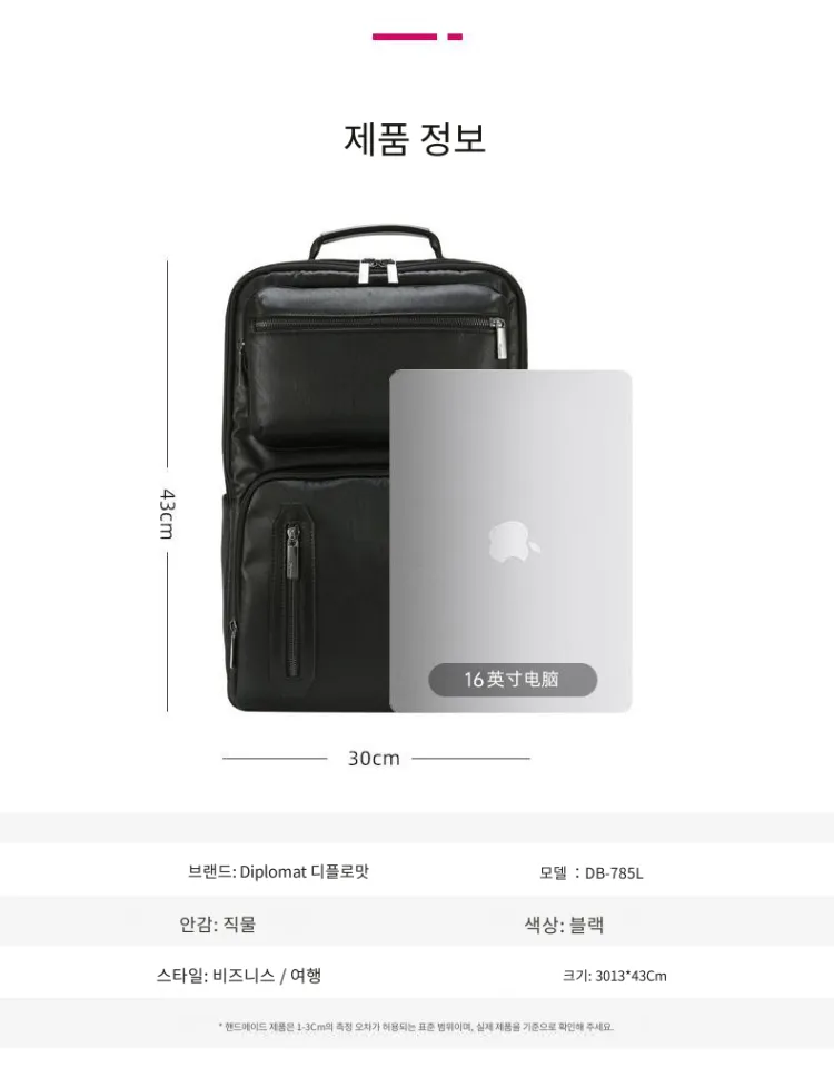 Diplomat 원단 노트북 가방 백팩 L 남녀공용 블랙 - POIZON