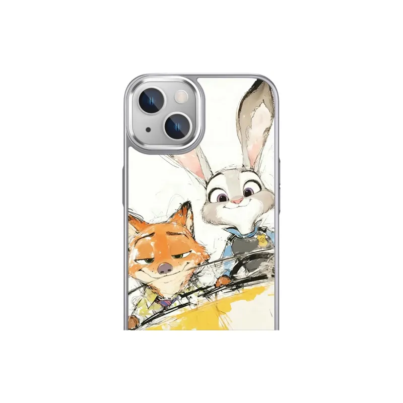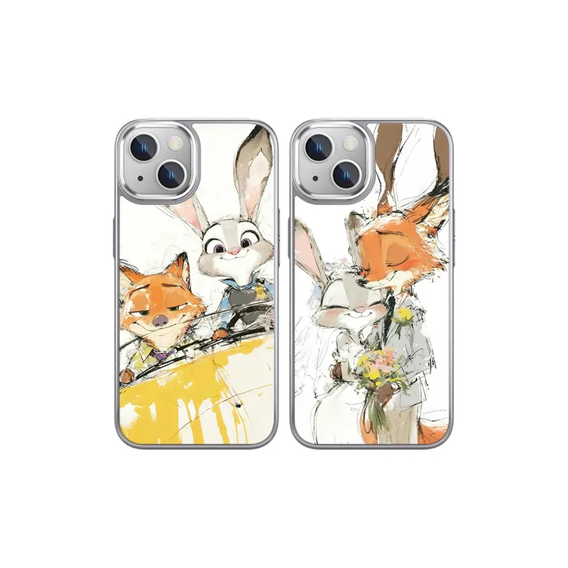디즈니 글라스 소재 주디 니크 웜 커플 손그림 래커 마감 안티 지문 무광 열 방출 금속 프레임 라지 홀 폰 케이스 적용 와 애플 16/15/14/13/12/11 플러스/프로/MAX 큐트 스타일 - POIZON