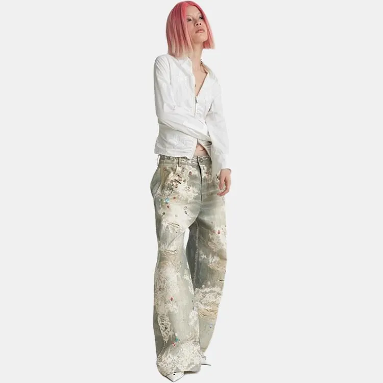 DND4DES 올오버 프린트 여성 캐주얼 팬츠