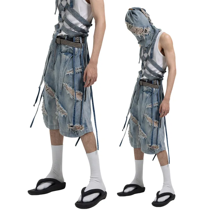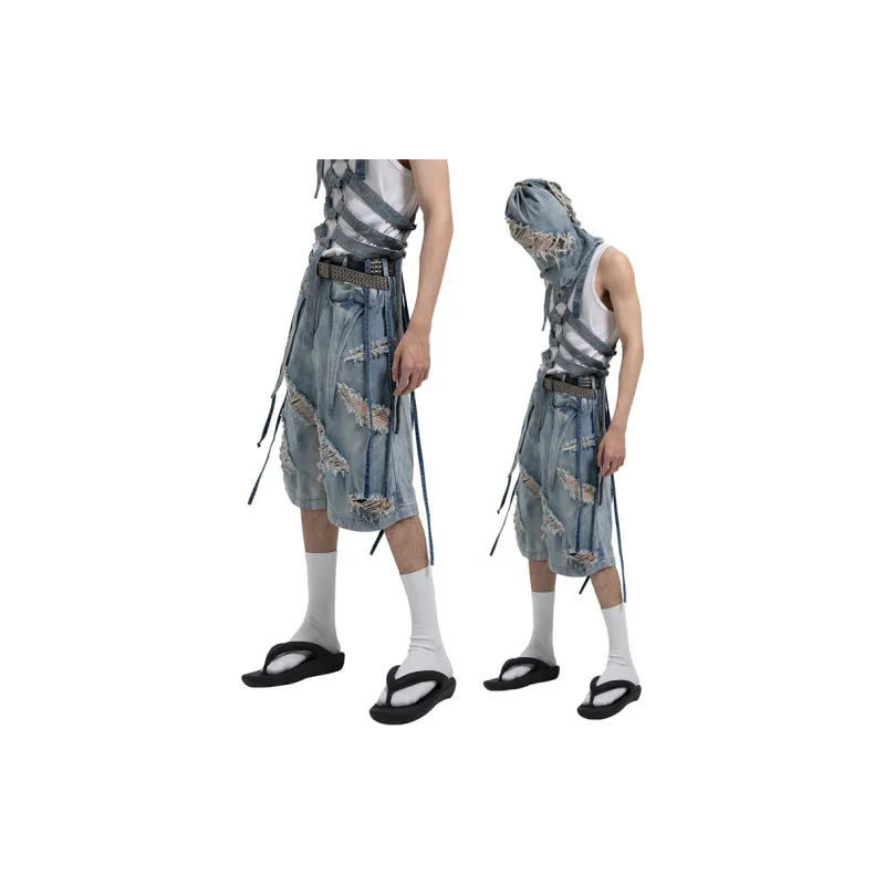 DND4DES 네이비 블루 남녀공용 데님 반바지 - POIZON