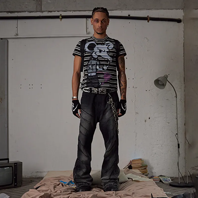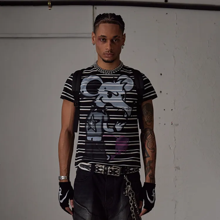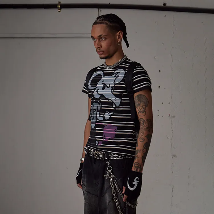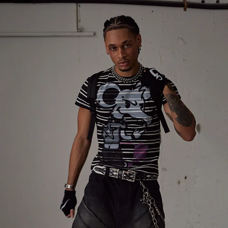 DND4DES 티셔츠 남녀공용 블랙 화이트 스트라이프 패턴 - POIZON