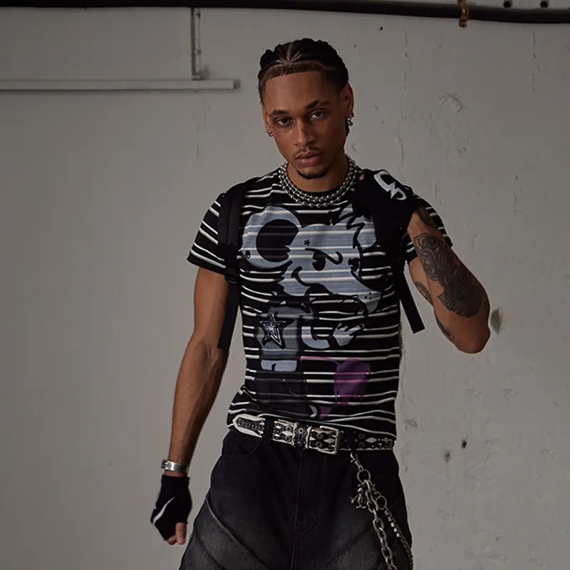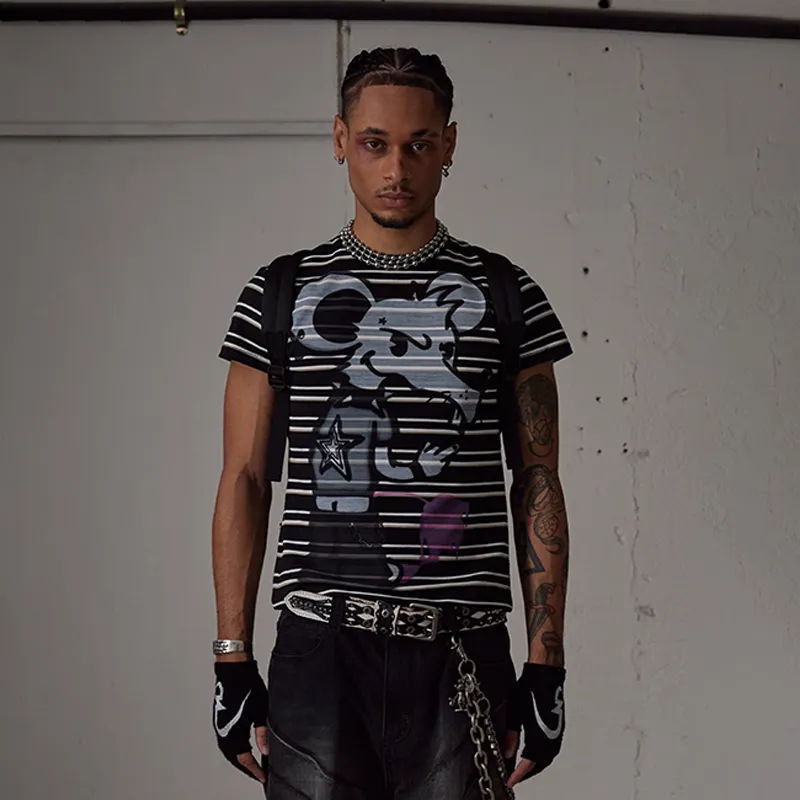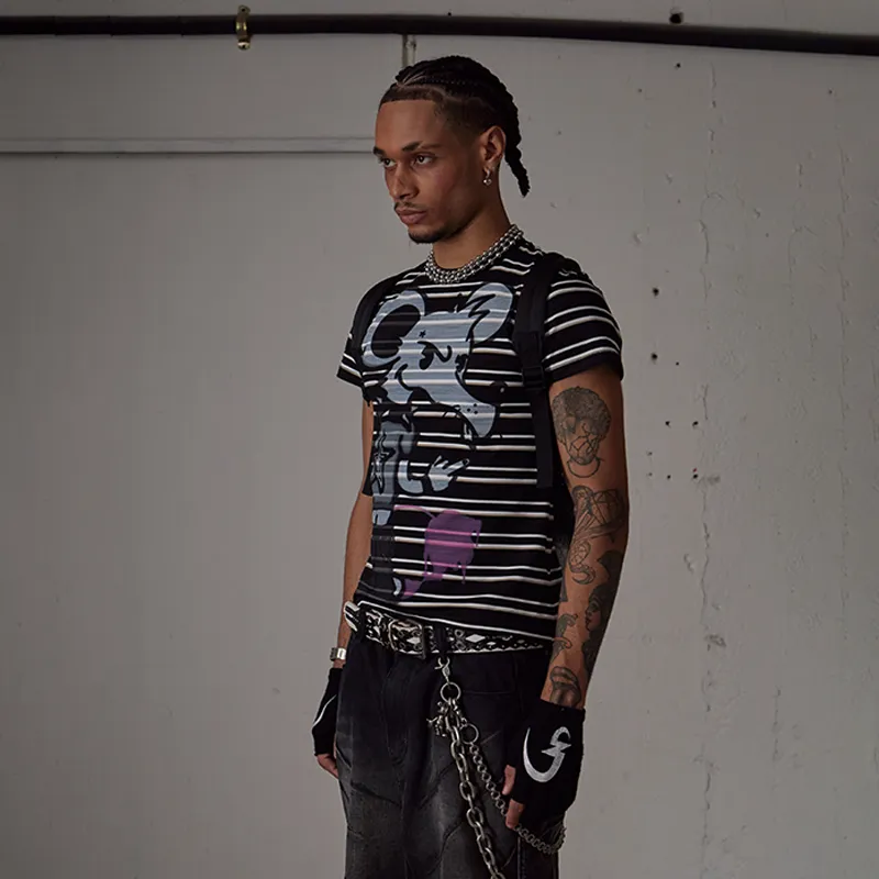 DND4DES 티셔츠 남녀공용 블랙 화이트 스트라이프 패턴
