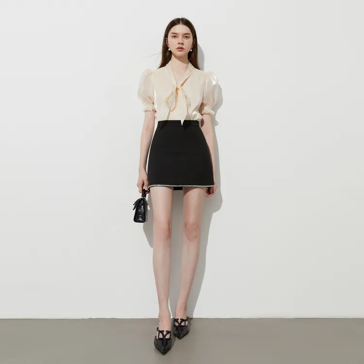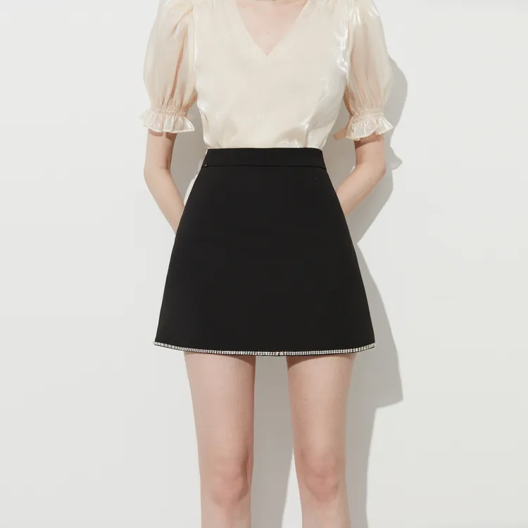 DPLAY 클래식 블랙 여성 캐주얼 숏 스커트 - POIZON