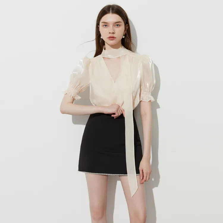 DPLAY 클래식 블랙 여성 캐주얼 숏 스커트