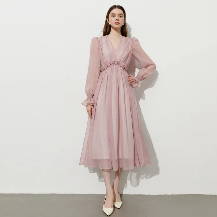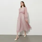 DPLAY 그레이 핑크 여성 긴팔 원피스 - POIZON