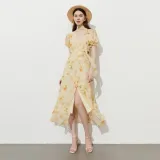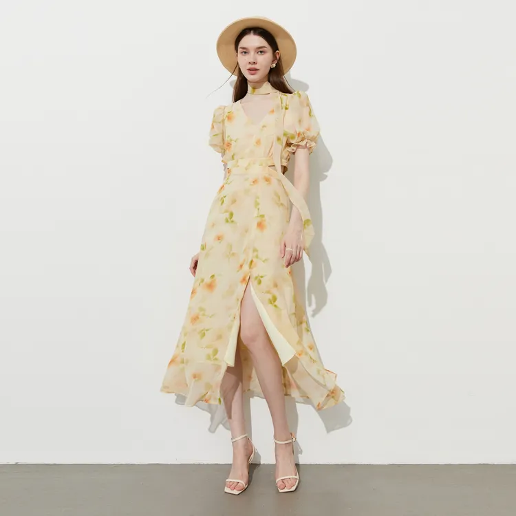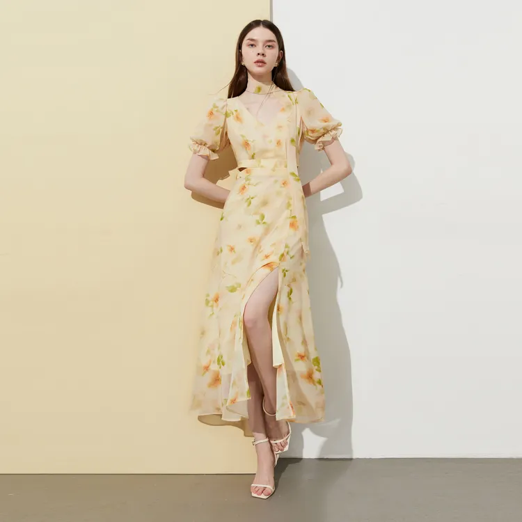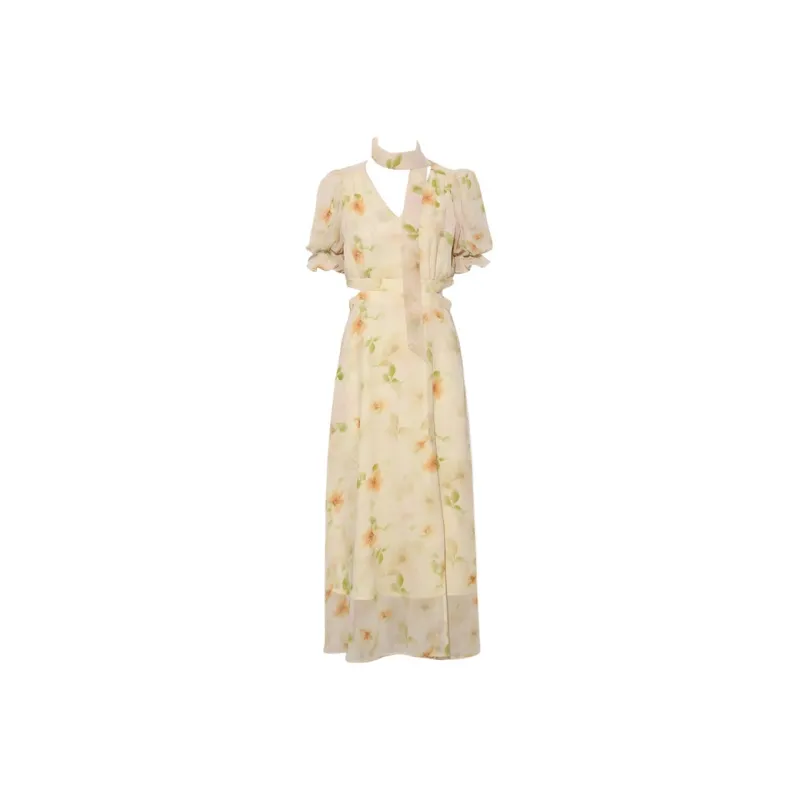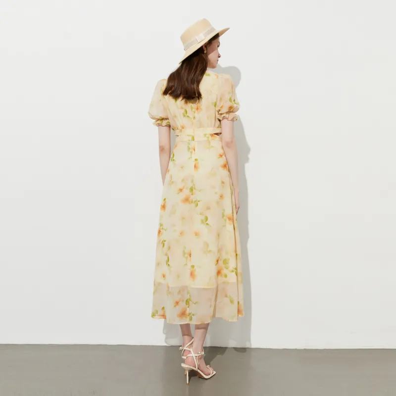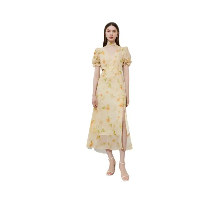 DPLAY 미드서머 오렌지 가든 여성 반팔 원피스 - POIZON