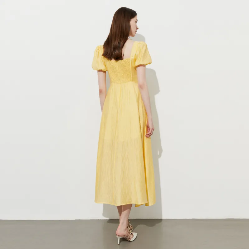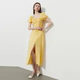 DPLAY 브라이트 옐로우 여성 반팔 원피스