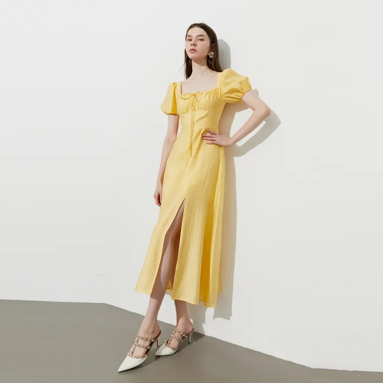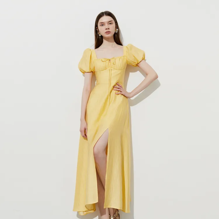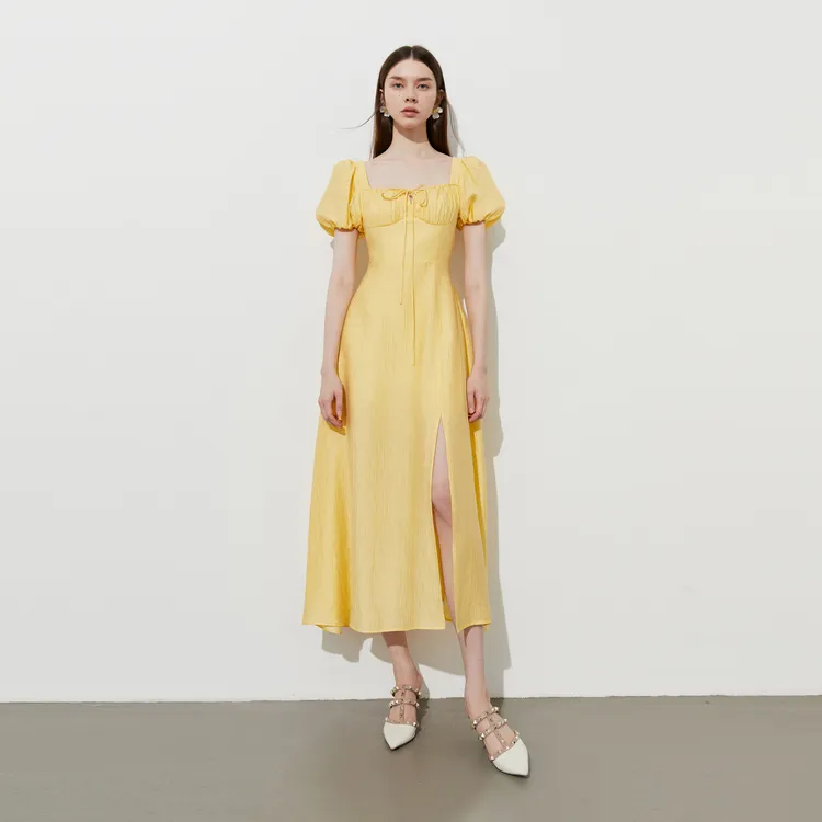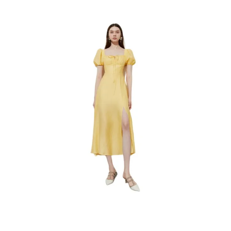 DPLAY 브라이트 옐로우 여성 반팔 원피스 - POIZON