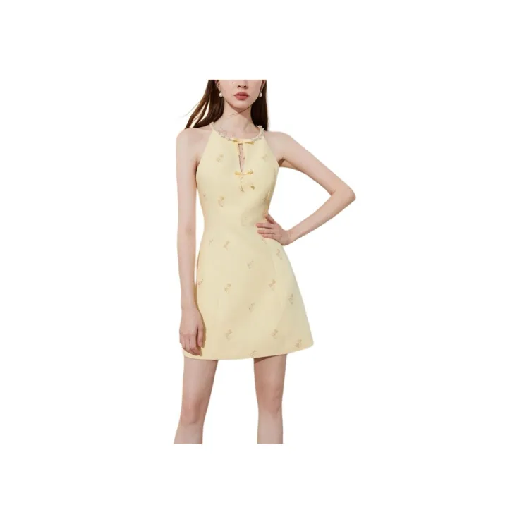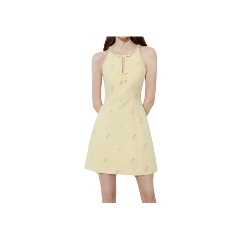 DPLAY 크림 옐로우 현물 여성 민소매 원피스 - POIZON