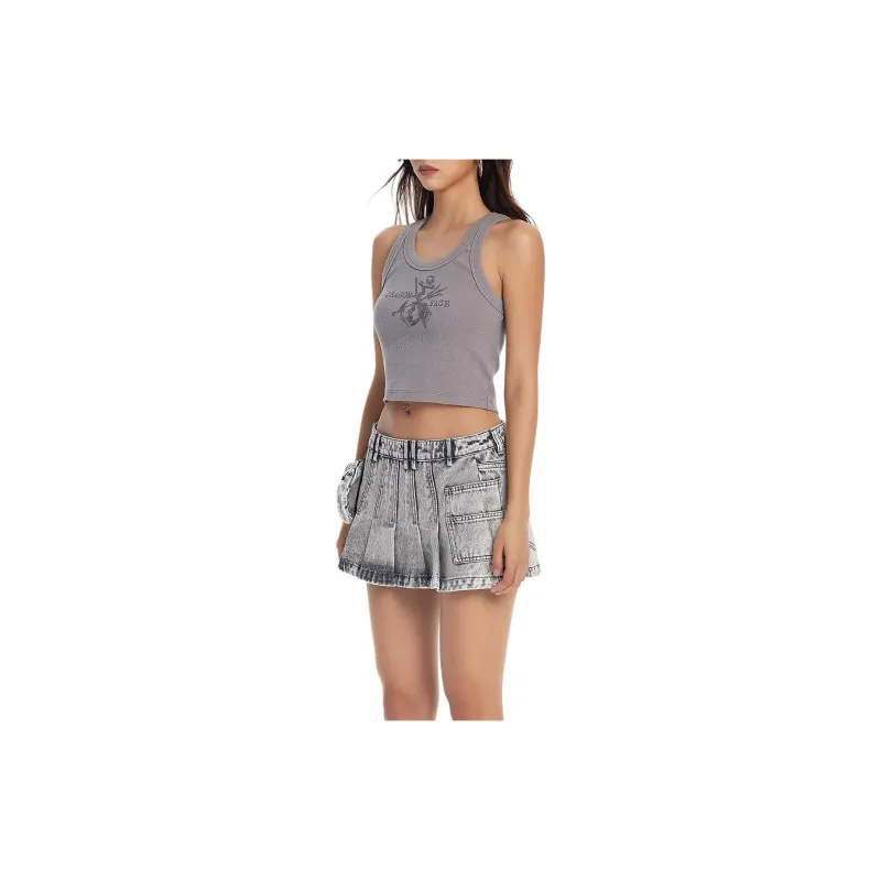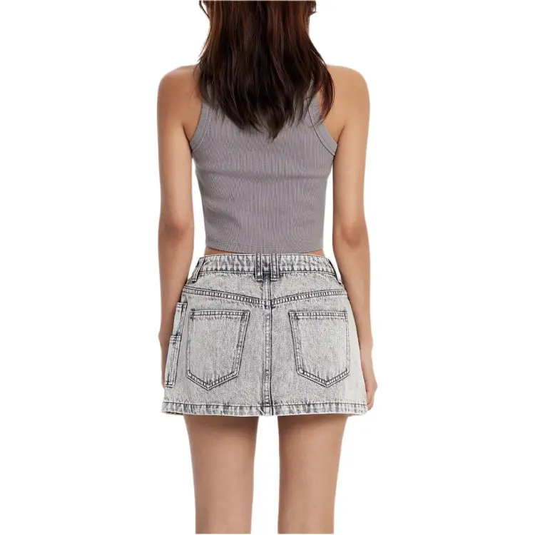 DRAGON FACE 데님 숏 스커트 여성 워시드 그레이