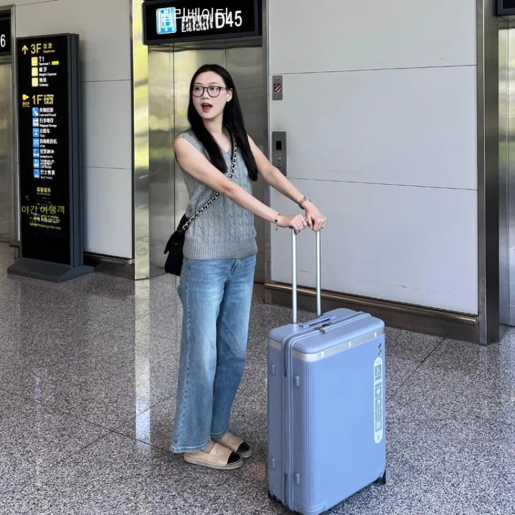 ECHOLAC 솔리드 PC 인터내셔널 휠 컴퓨터 케이스, 암호 선물 포장 및 각인, 캐리어 지퍼 잠금, 대용량 여행 수트케이스 20인치, 24인치, 26인치, 28인치 남녀공용 배색 - POIZON