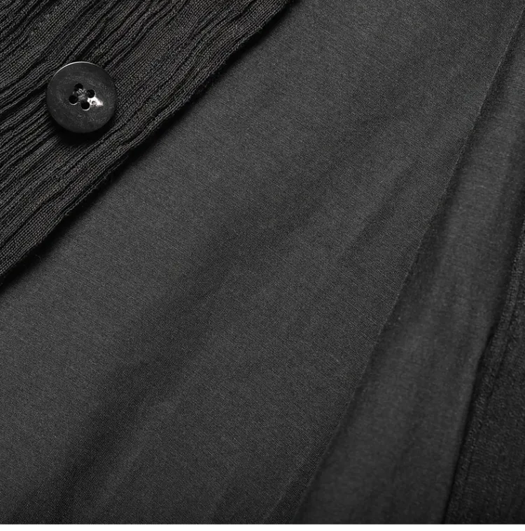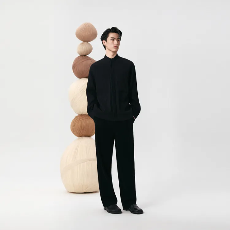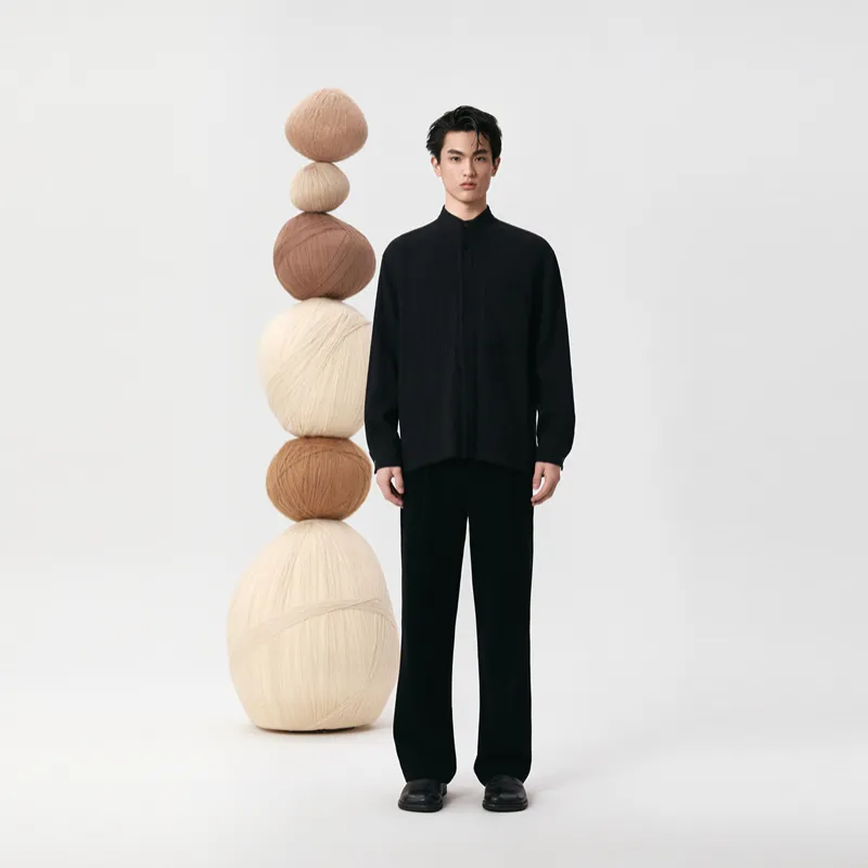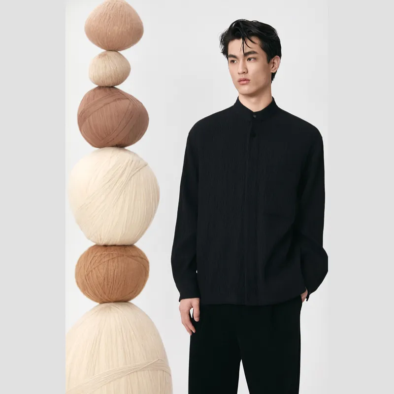 원단: 89.7% 비스코스, 10.3% 폴리아미드 본체 안감: 71.9% 면, 28.1% 천연 실크 소매 안감: 100% 폴리에스터