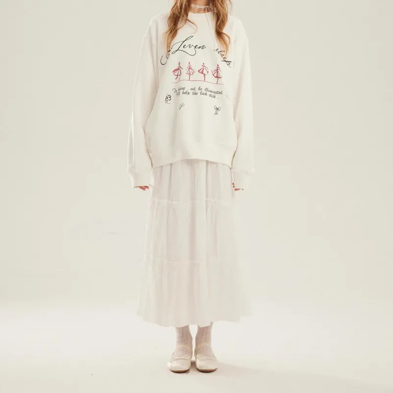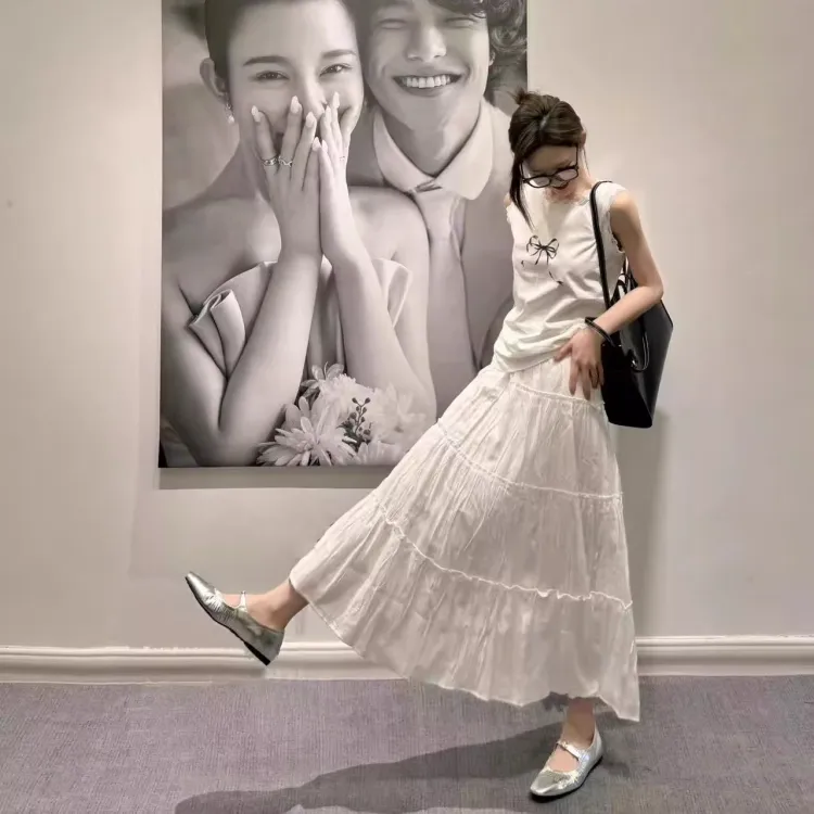 ELEVEN SLEEP 화이트 여성 캐주얼 롱 스커트 - POIZON