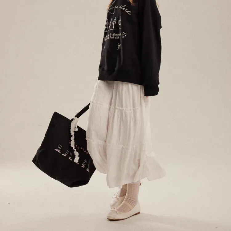 ELEVEN SLEEP 화이트 여성 캐주얼 롱 스커트
