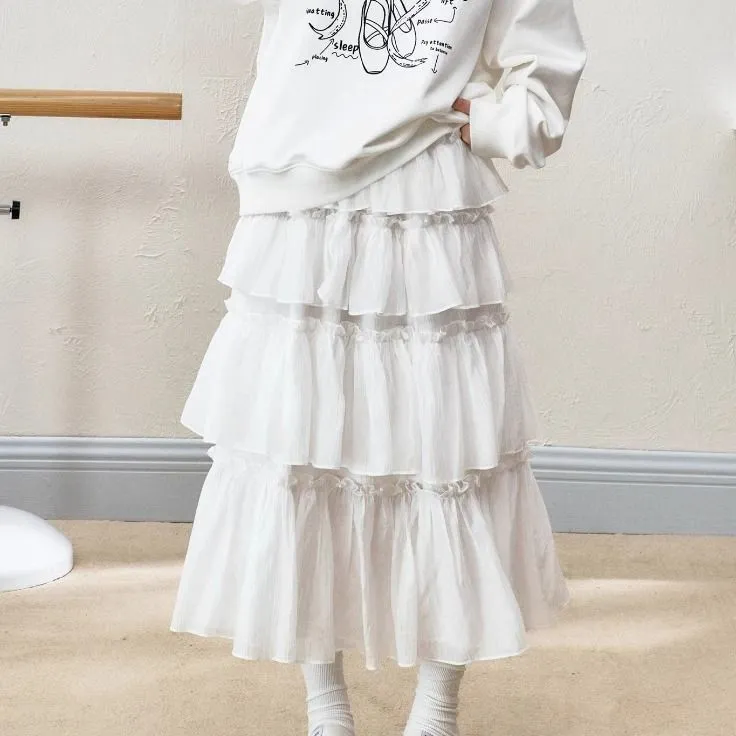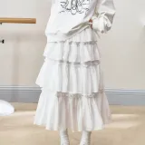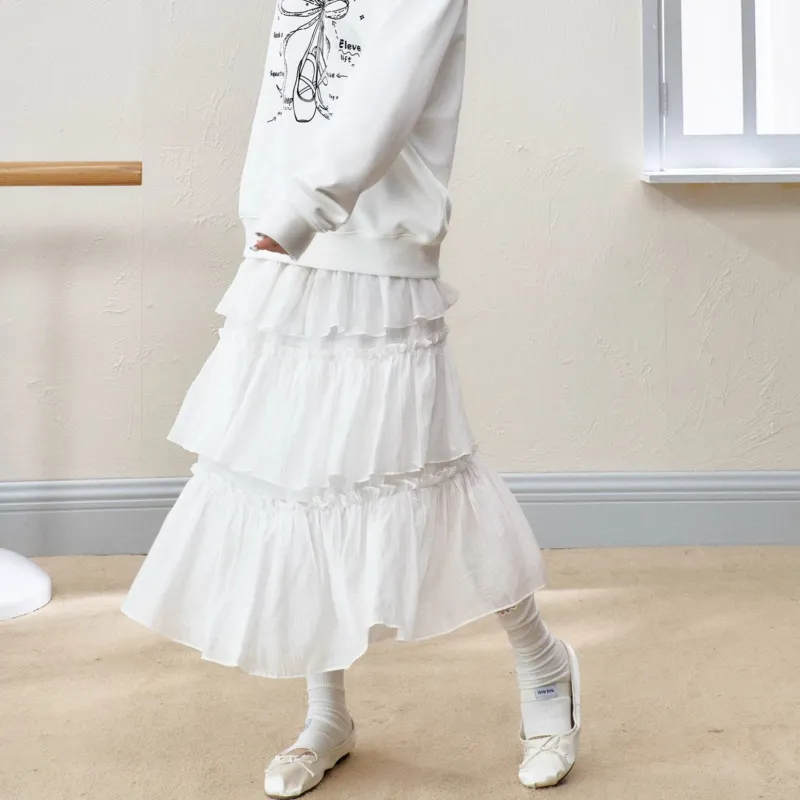 ELEVEN SLEEP 캐주얼 롱 기장 스커트 여성 화이트