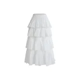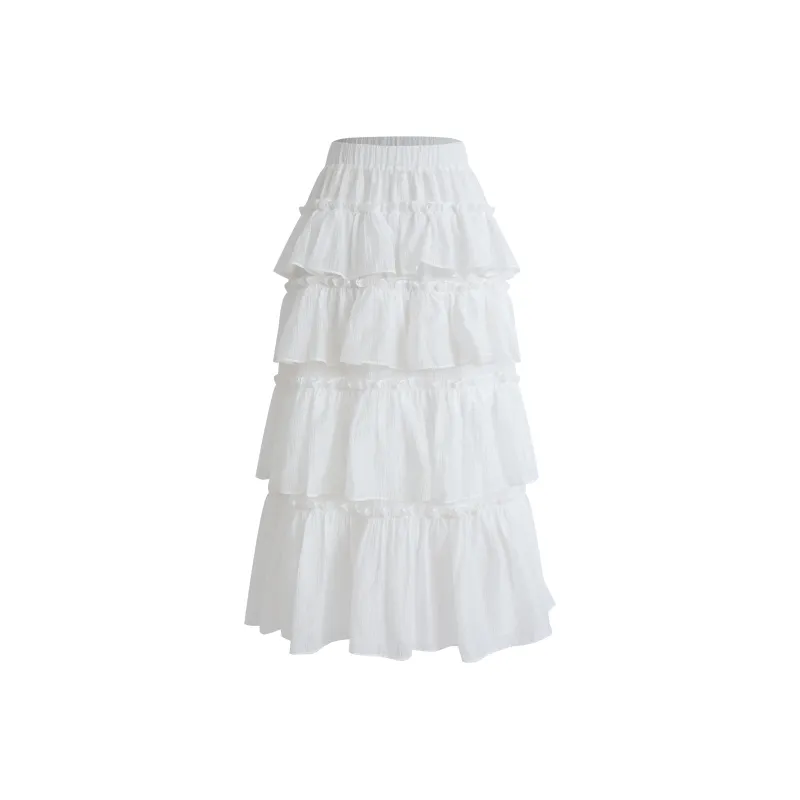 ELEVEN SLEEP 캐주얼 롱 기장 스커트 여성 화이트 - POIZON
