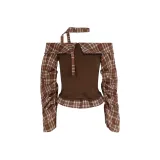 ELEVEN SLEEP 브라운 상의 여성 티셔츠 - POIZON