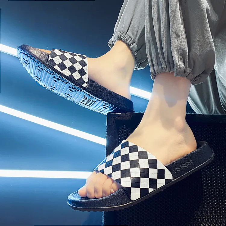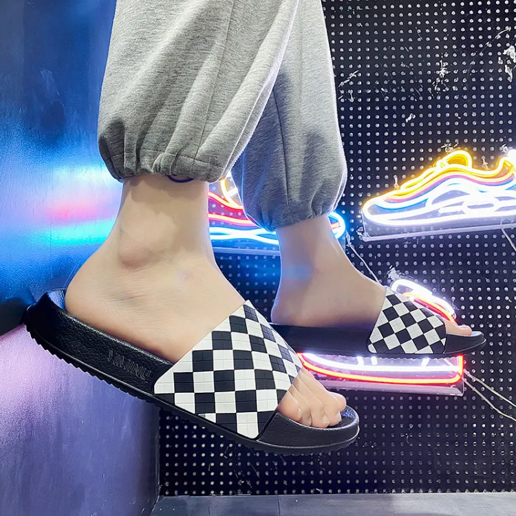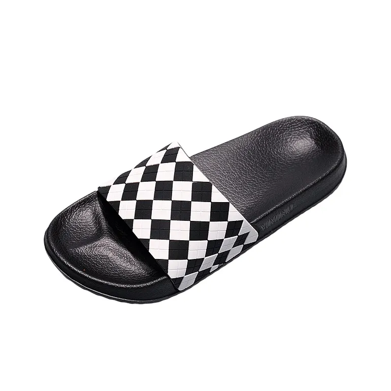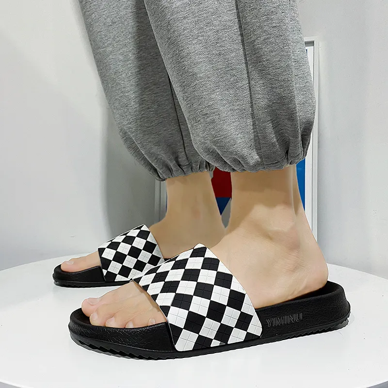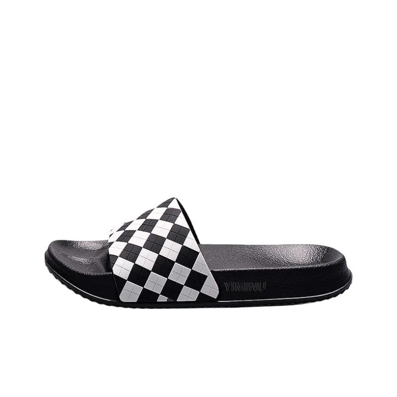 Eminu 슬라이드 슬리퍼 블랙 화이트 체크 남성 - POIZON