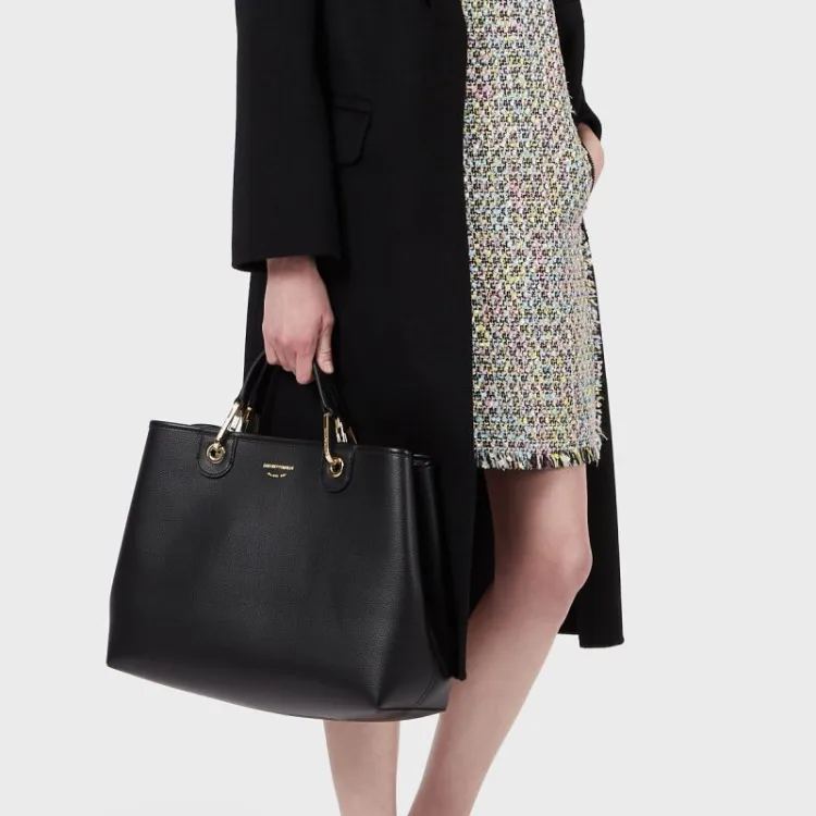 EMPORIO 아르마니 PU 토트 가방, 쇼핑백, 숄더 백, 핸드백 여성 블랙 - POIZON