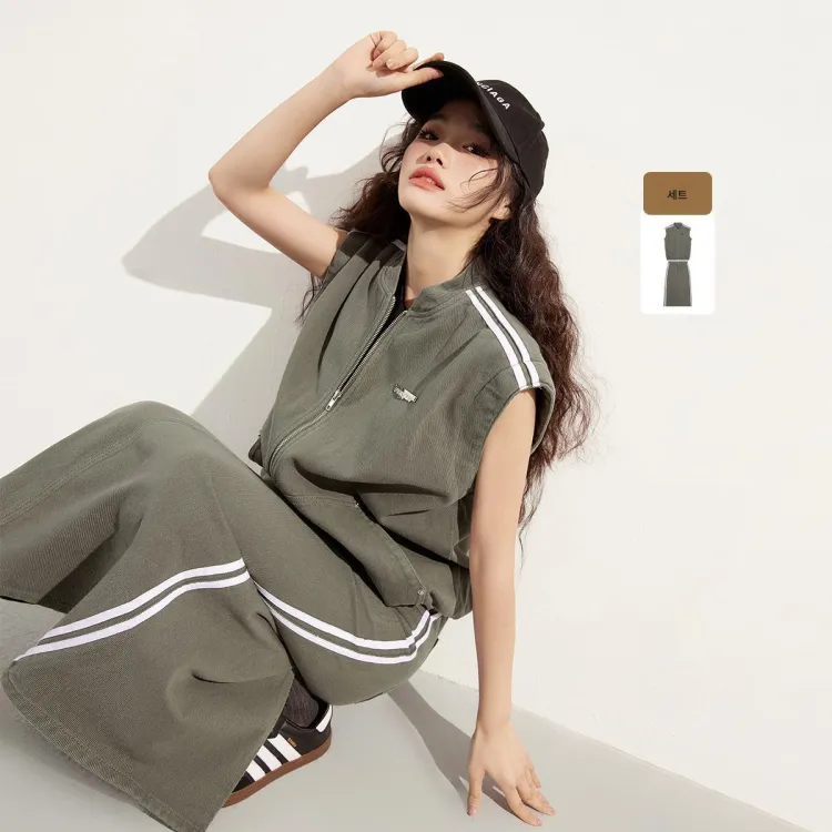 세트:의류 세트 (아미 그린 조끼 + 아미 그린 스커트)