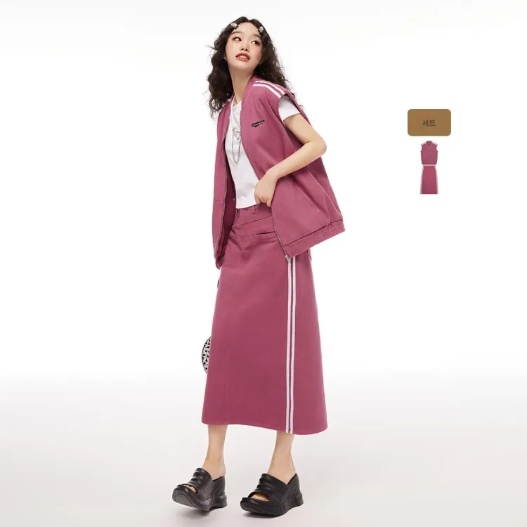 의류 세트 (라즈베리 핑크 조끼 + 라즈베리 핑크 스커트)