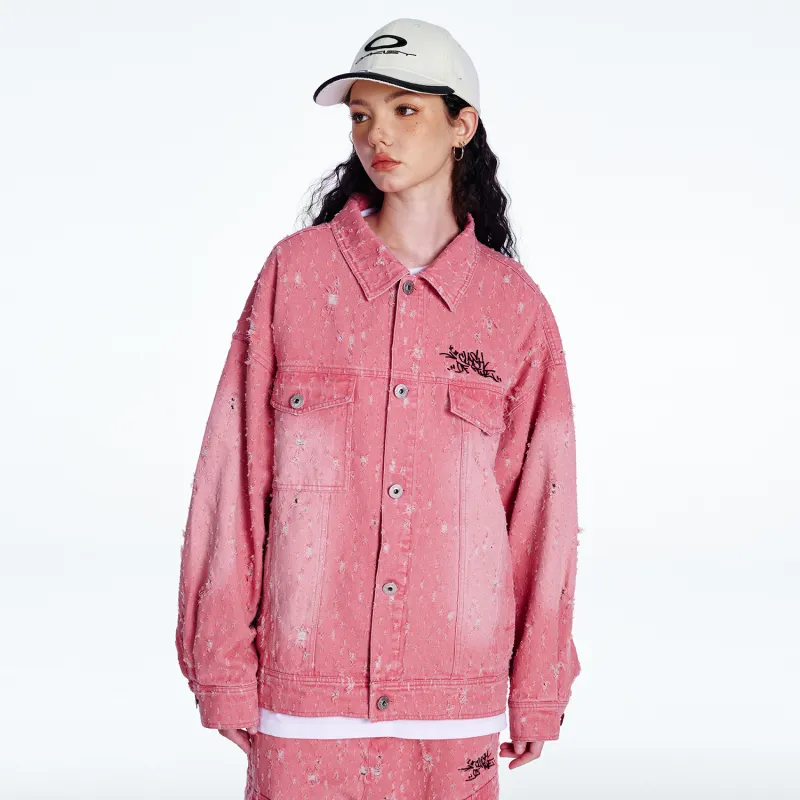 블루: 면 71%, 폴리에스터 22.8%, 기타 섬유 6.2% 핑크: 면 59.2%, 재생 셀룰로오스 섬유 30.6%, 폴리에스터 10.2%