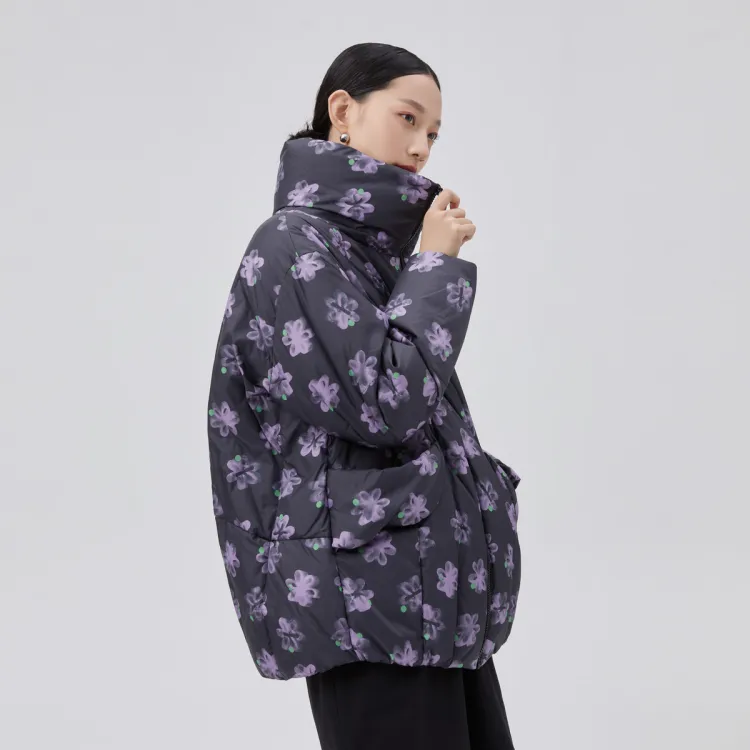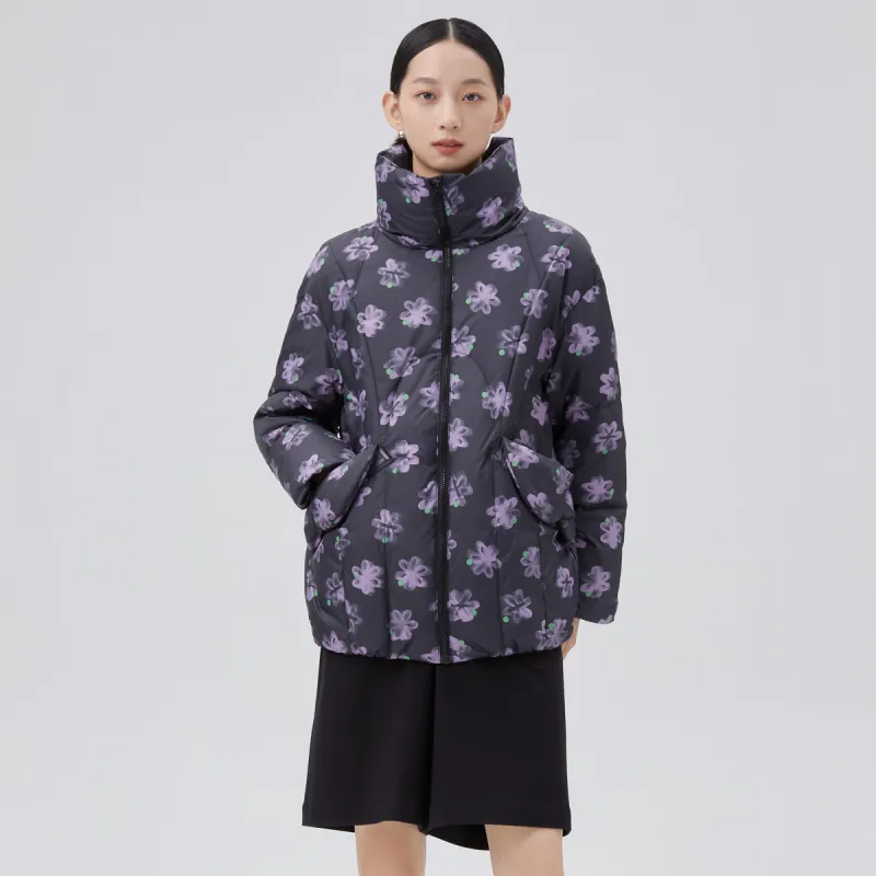 ERAL 블랙+패턴 여성 다운 재킷 - POIZON