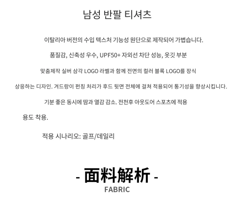 원단: 71.3% 폴리아미드, 28.7% 엘라스테인 옐로우 원단: 85.9% 폴리아미드, 14.1% 엘라스테인