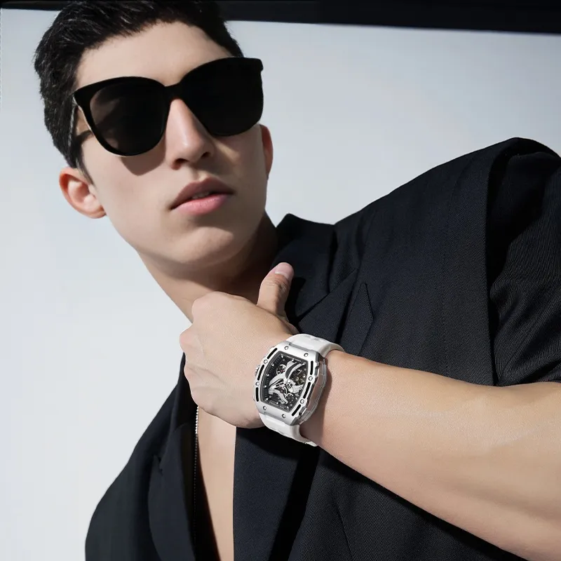 FAIRWHALE 오토매틱 메커니컬 무브먼트 실리콘 스트랩 중국 시계 남성용 시계 블랙 다이얼