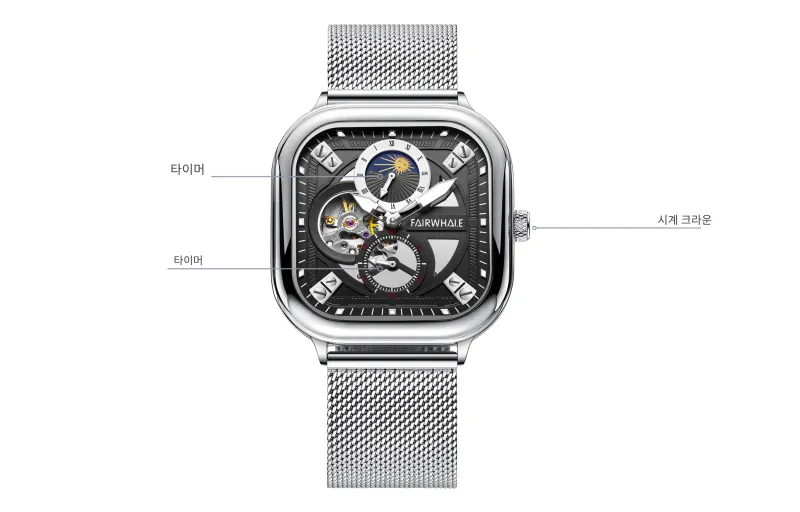 옵션:실버 케이스 블랙 다이얼 실버 네트 백
