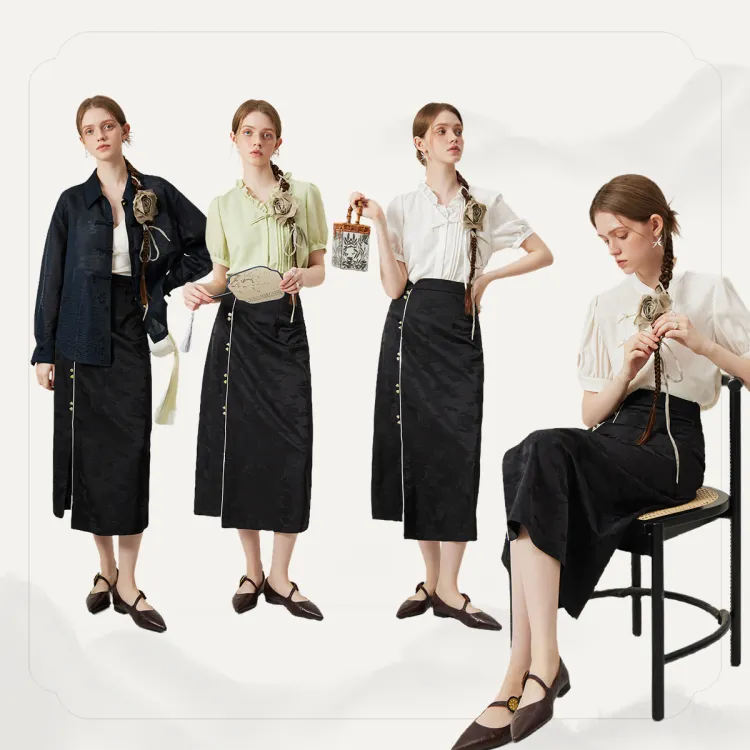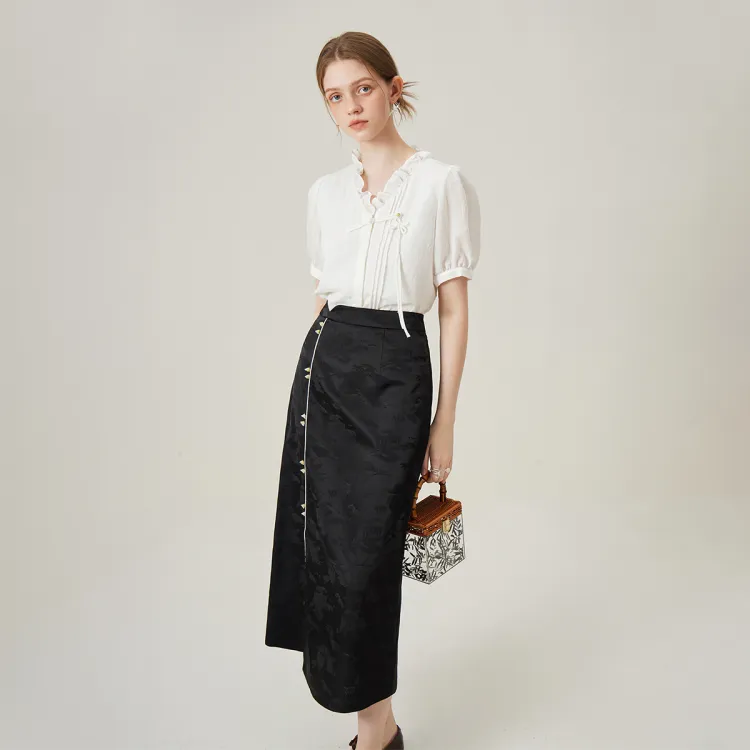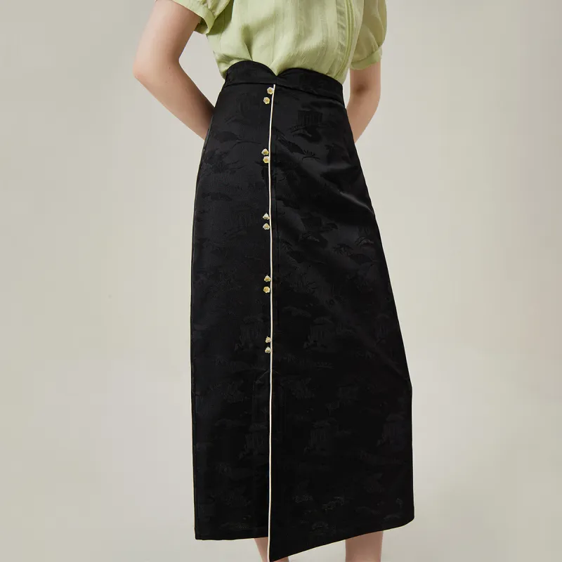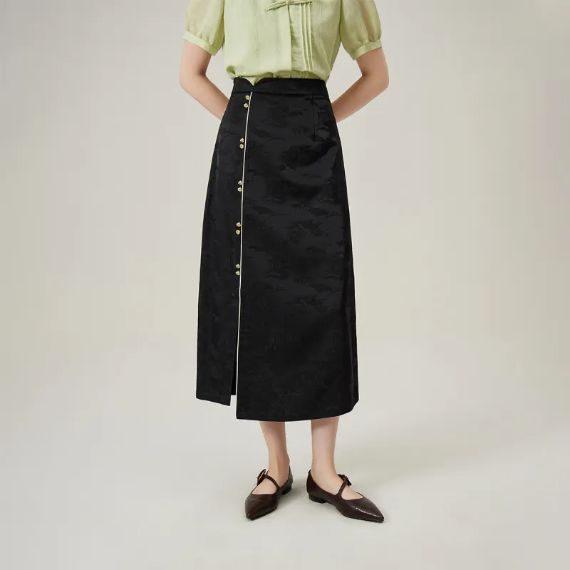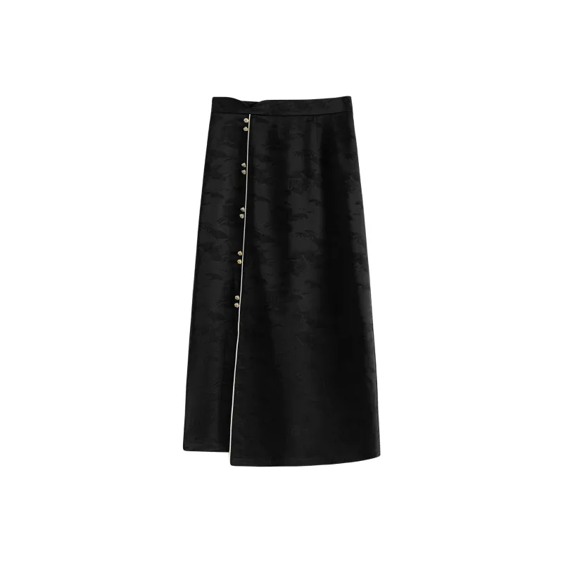 FANSILANEN 블랙 여성 캐주얼 롱 스커트 - POIZON