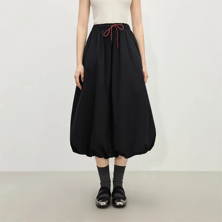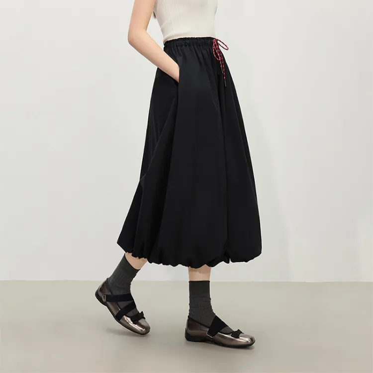 FANSILANEN 블랙 여성 캐주얼 롱 스커트 - POIZON