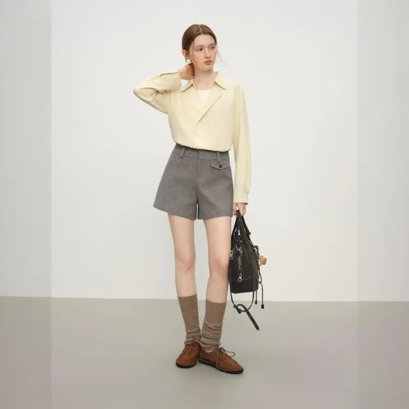 FANSILANEN 플라워 그레이 여성 캐주얼 반바지 - POIZON