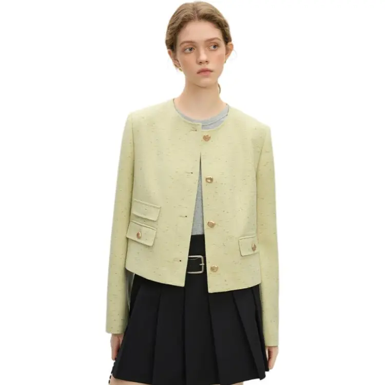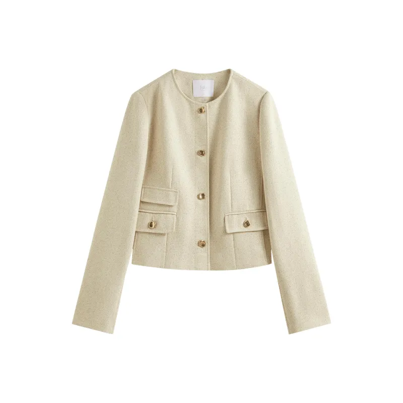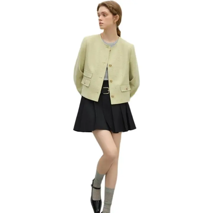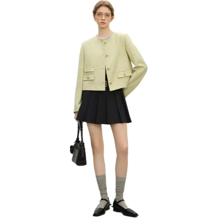 라이트 애프리콧 원단: 78.7% 폴리에스터, 21.3% 비스코스 안감: 100% 폴리에스터 스프라우트 그린 원단: 78.7% 폴리에스터, 21.3% 비스코스 안감: 52% 폴리에스터, 48% 비스코스