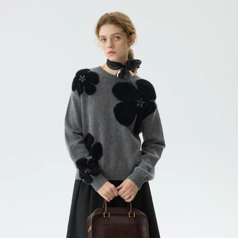 FANSILANEN 니트웨어 여성 기모 안감 선택 가능 그레이 - POIZON