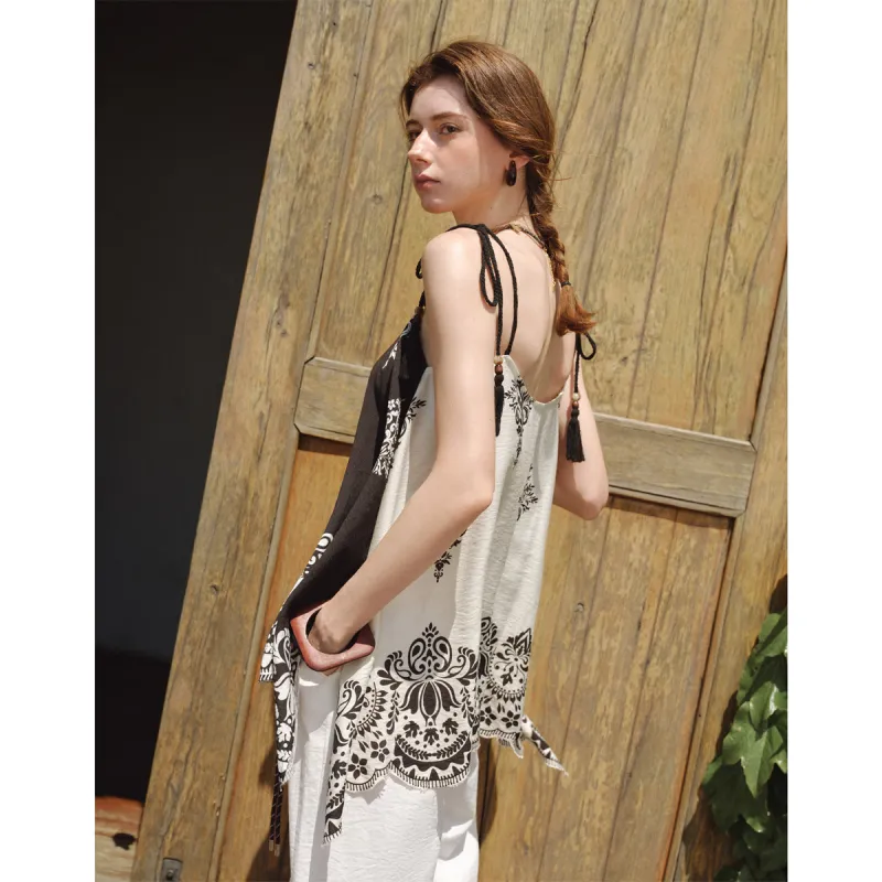 FANSILANEN 블랙 애프리콧 패턴 여성 셔츠