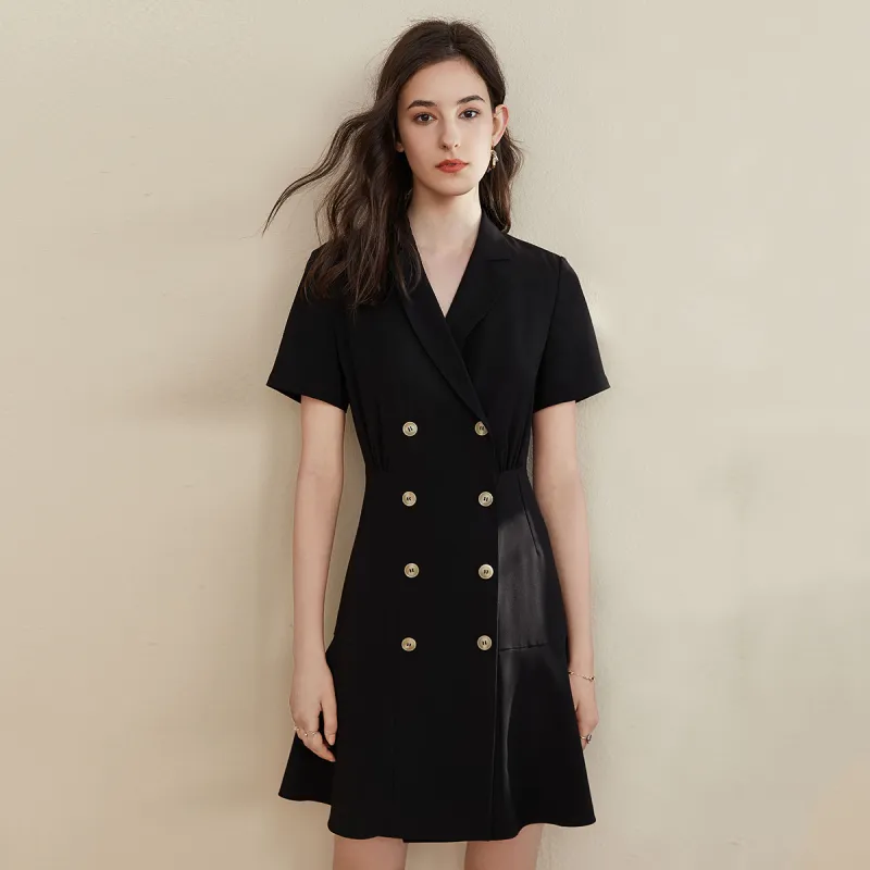 FANSILANEN 블랙 여성 반팔 원피스 - POIZON