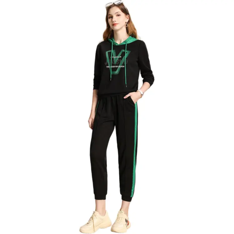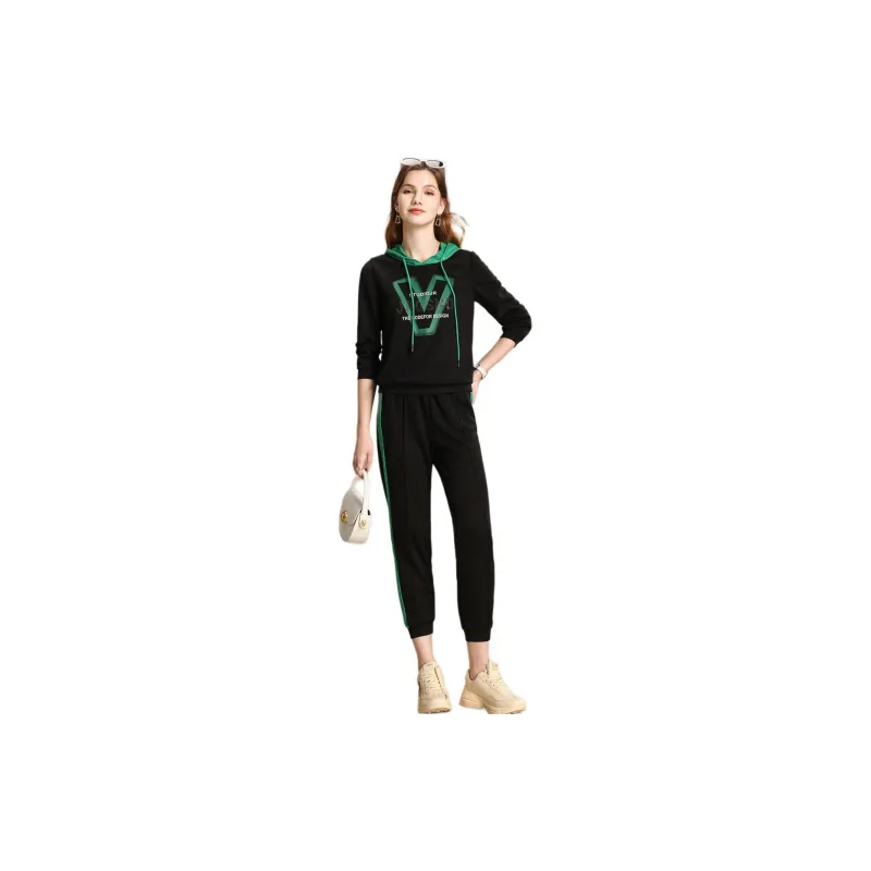 FENHONGMALI 블랙 여성 캐주얼 슈트