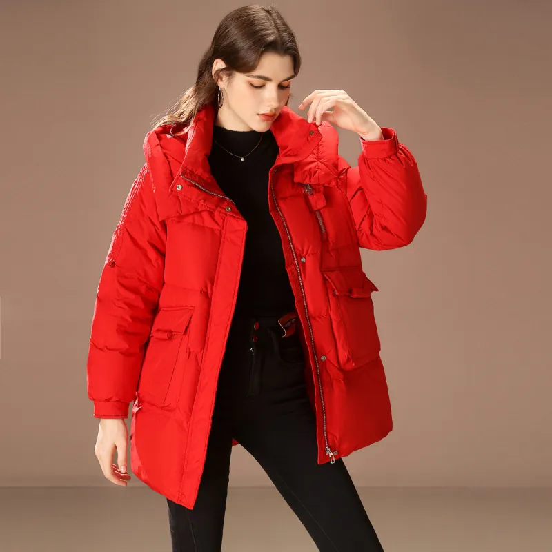 FENHONGMALI 레드 여성 다운 재킷 - POIZON