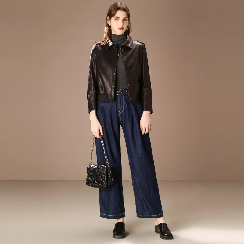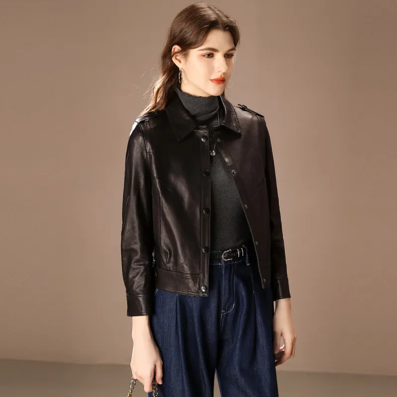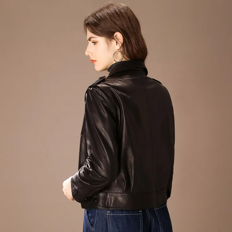 FENHONGMALI 블랙 여성 가죽 자켓 - POIZON