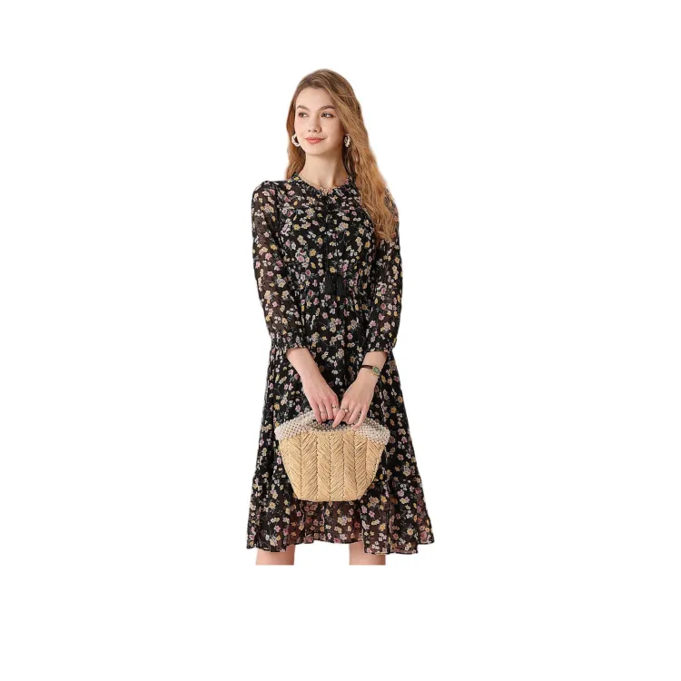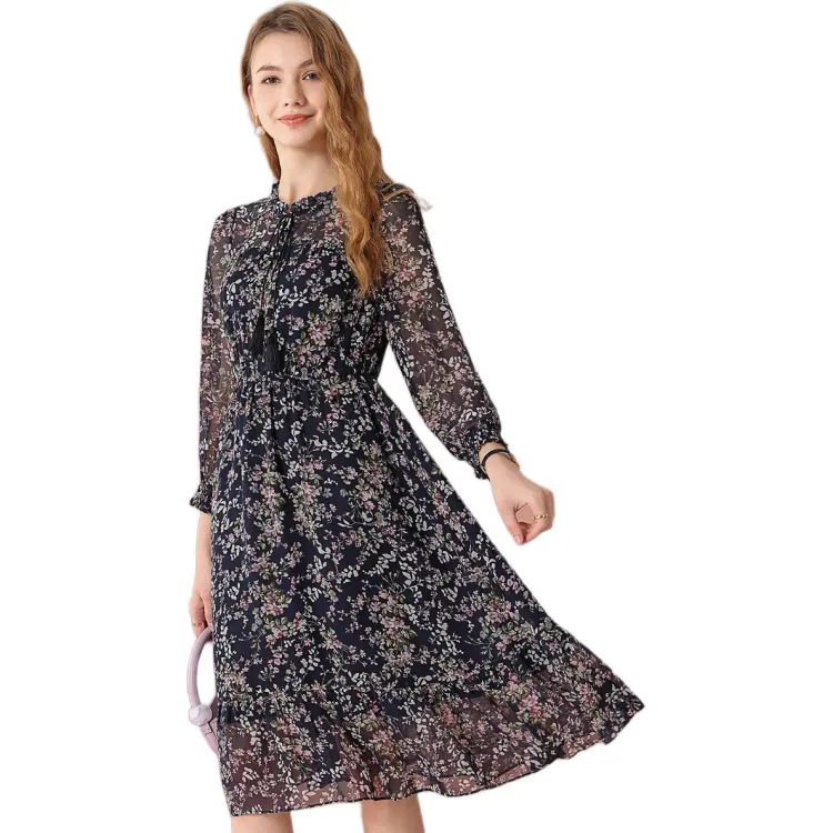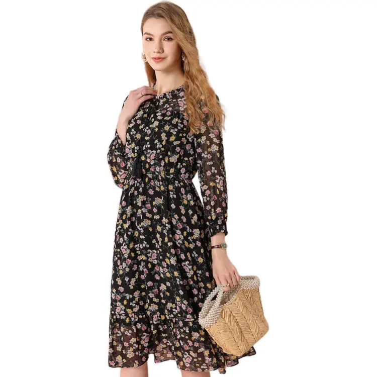 FENHONGMALI 여성 긴팔 원피스