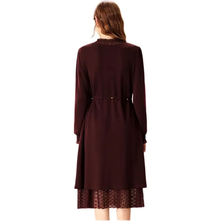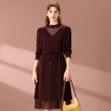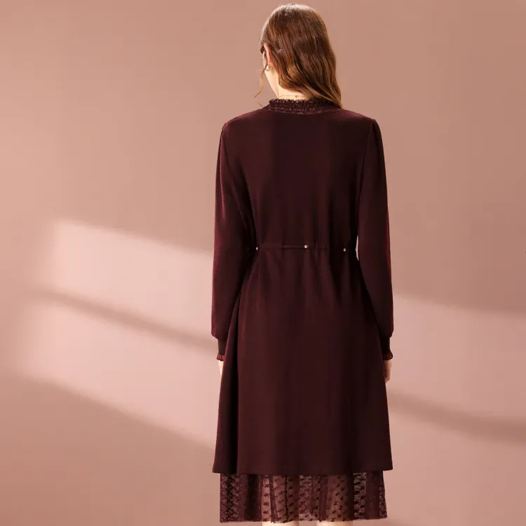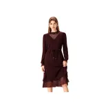 FENHONGMALI 퍼플 여성 긴팔 원피스