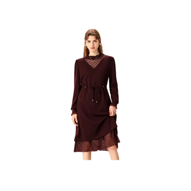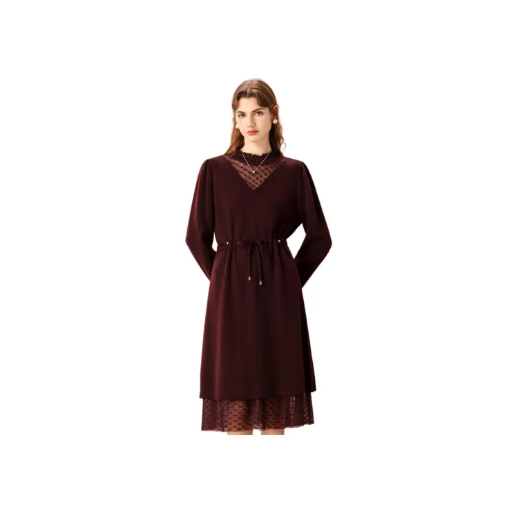 FENHONGMALI 퍼플 여성 긴팔 원피스 - POIZON