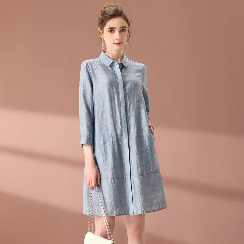 FENHONGMALI 포지 블루 여성 셔츠