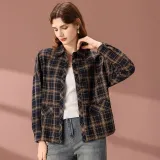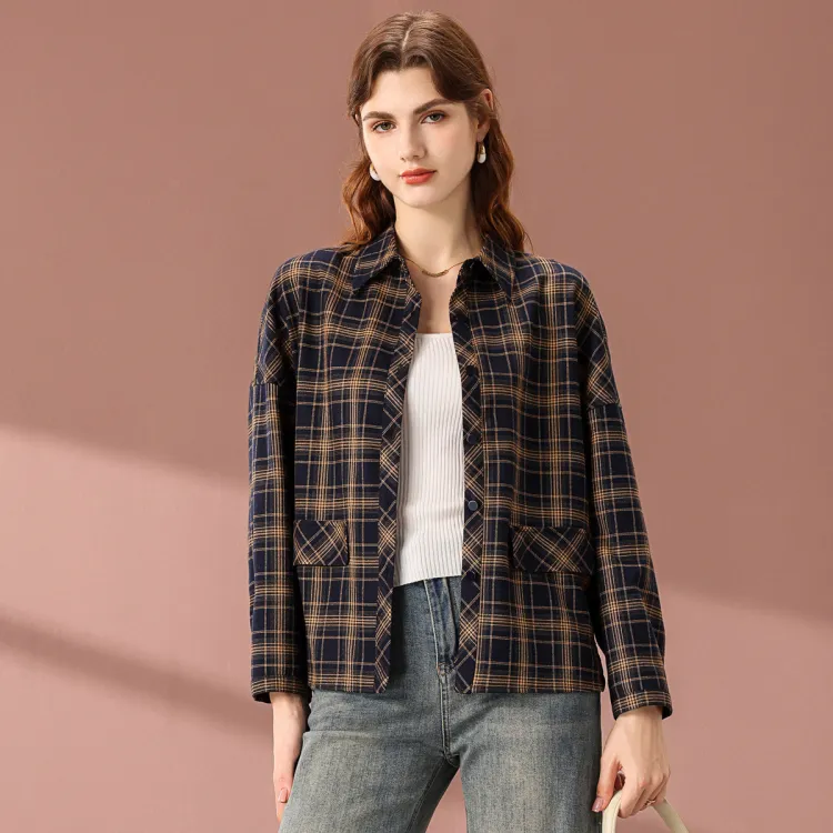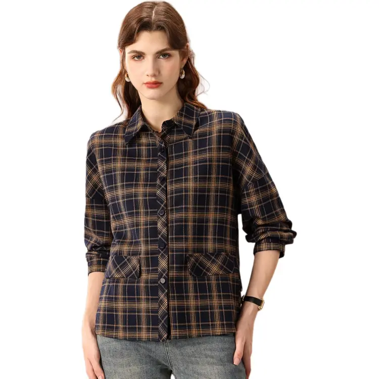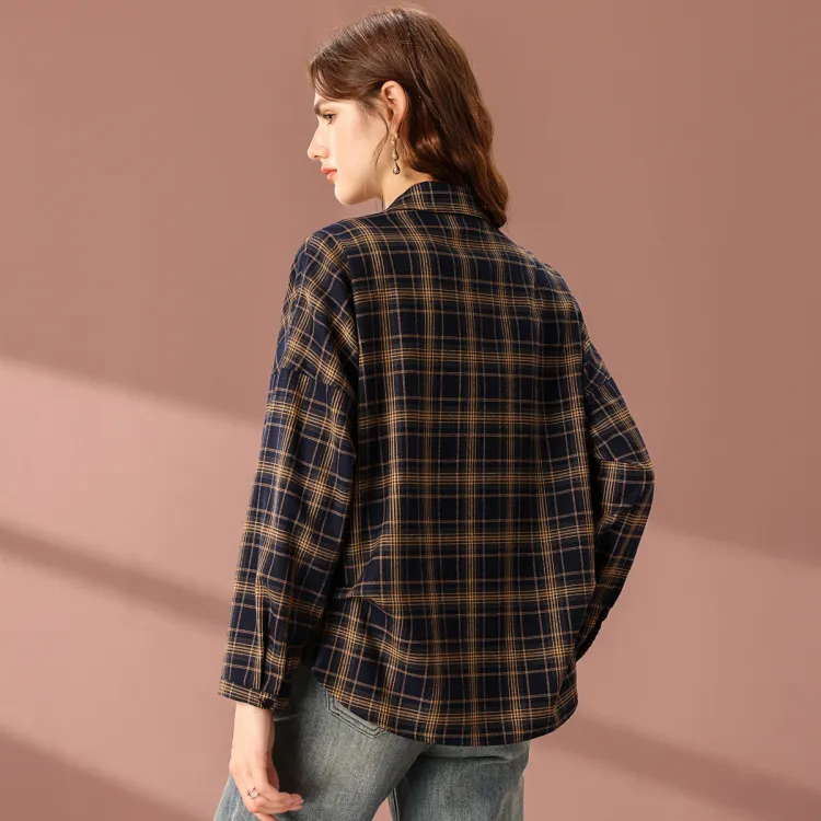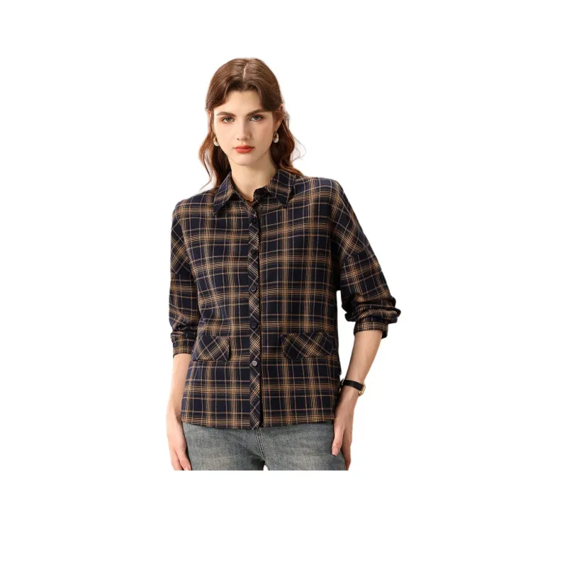 FENHONGMALI 옐로우 체크 여성 셔츠