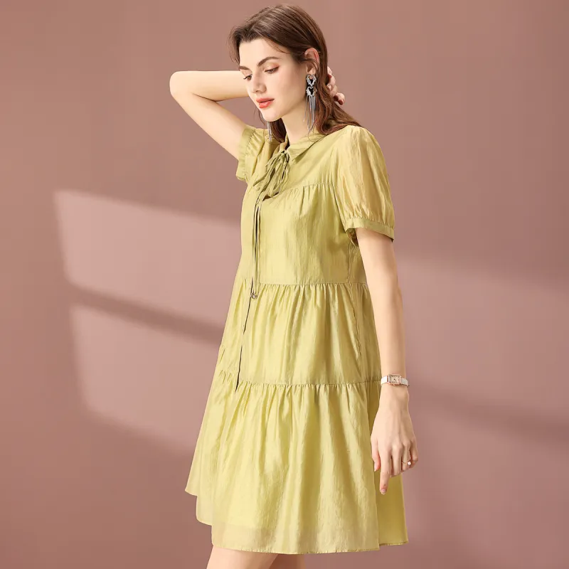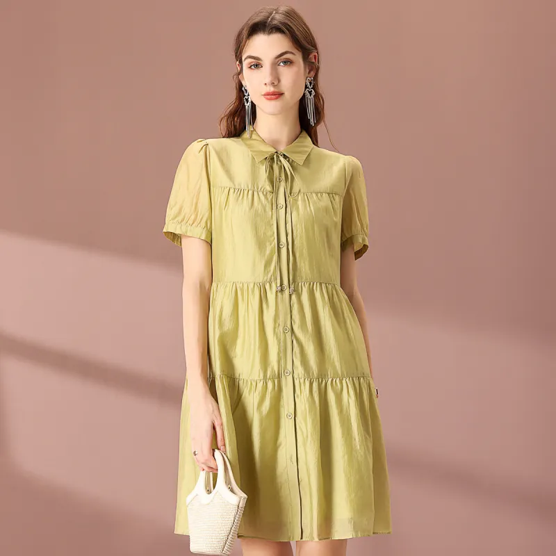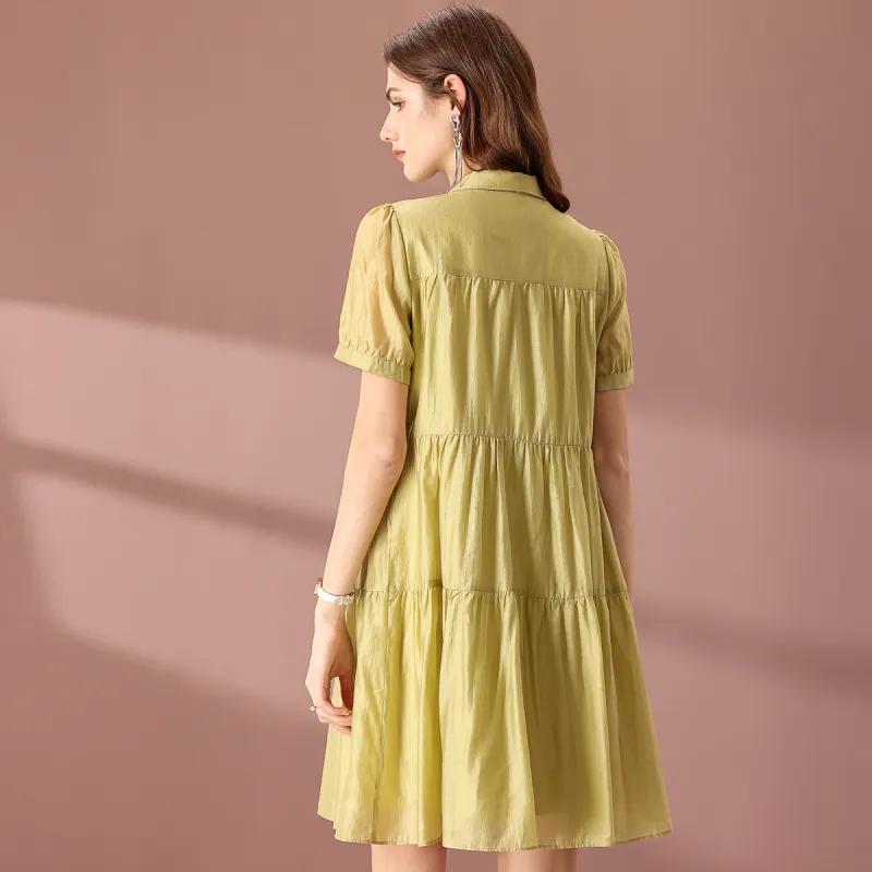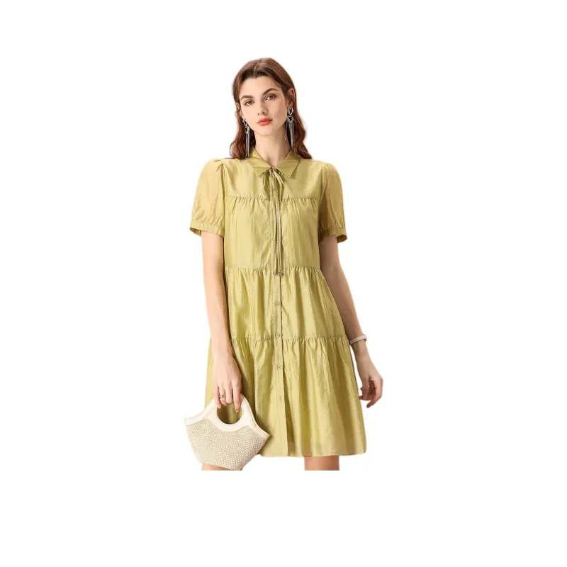 FENHONGMALI 그린 여성 반팔 원피스 - POIZON