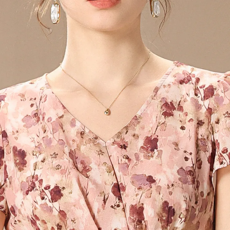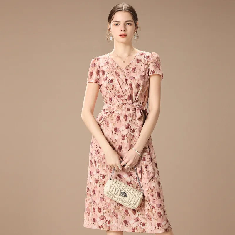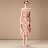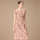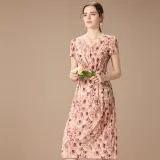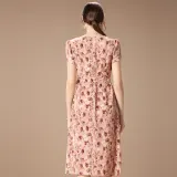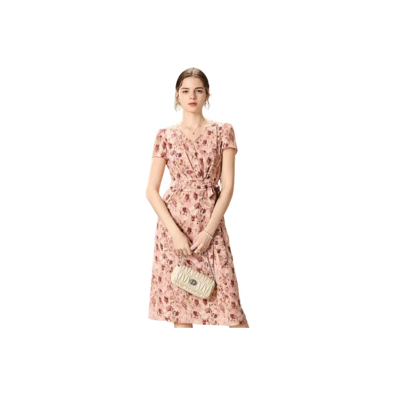 FENHONGMALI 핑크 플로럴 여성 반팔 원피스 - POIZON