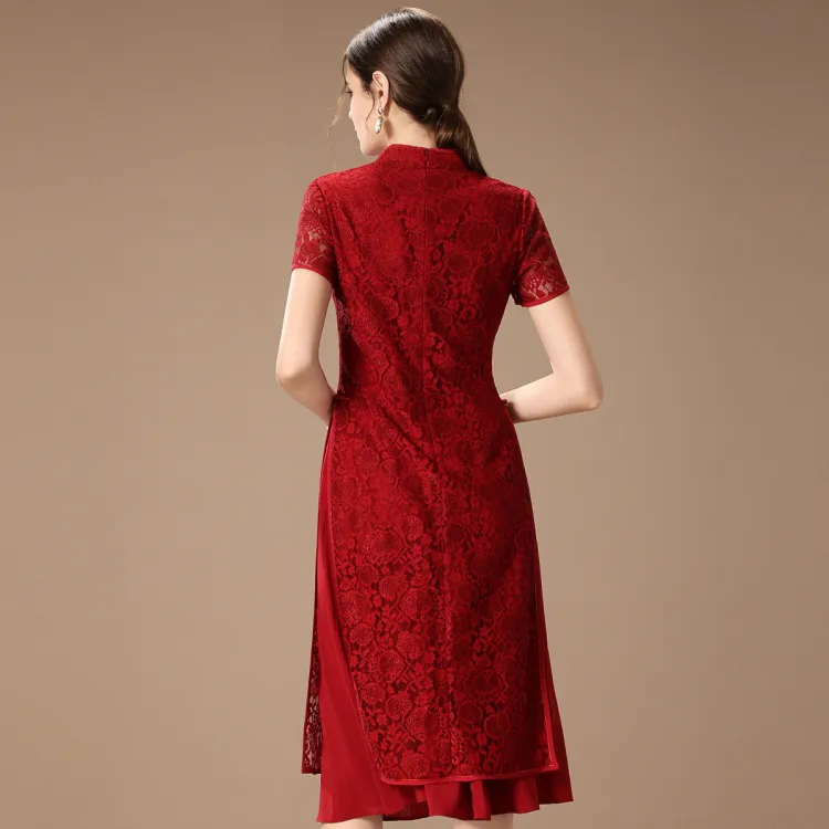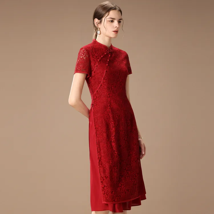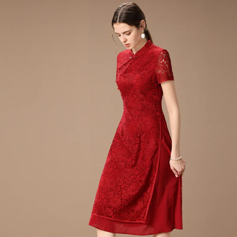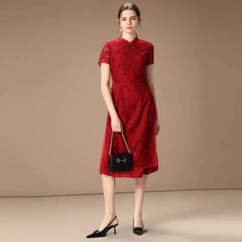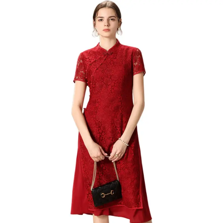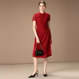 FENHONGMALI 레드 여성 반팔 원피스 - POIZON