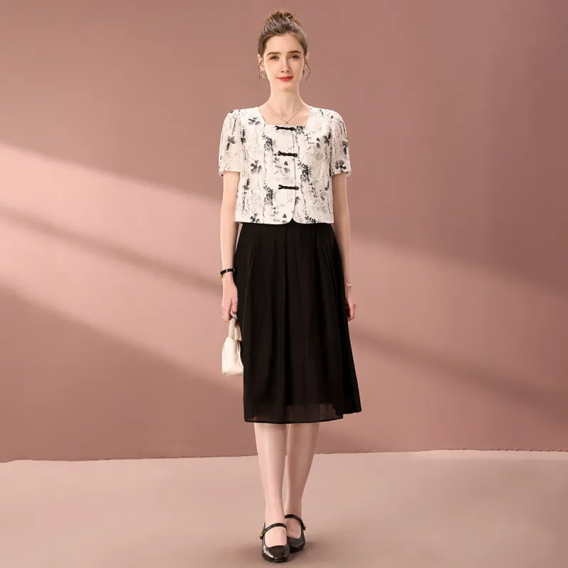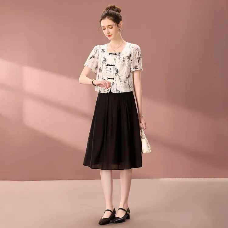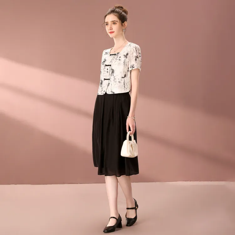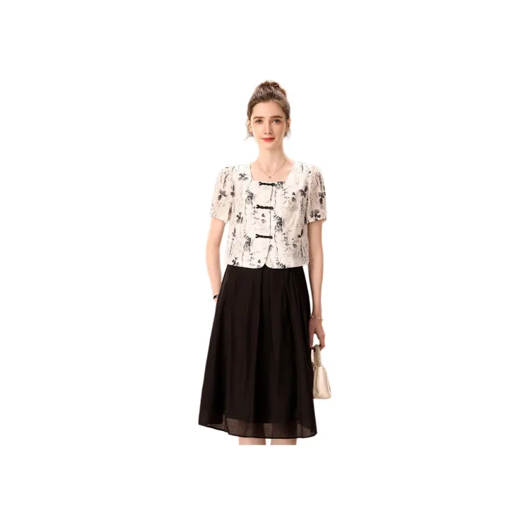 FENHONGMALI 블랙 화이트 여성 투피스 스커트 세트 - POIZON